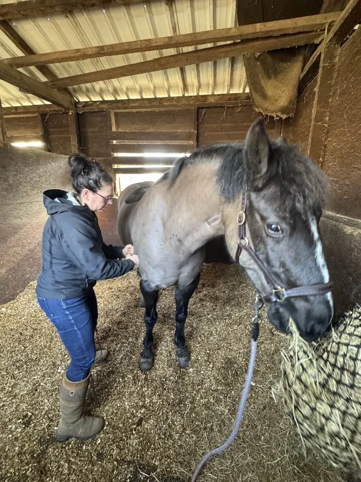 Sessions begin with a quiet assessment of your horse’s posture, movement, and areas of tension.Sessions are calm and unhurried, allowing your horse time to respond.